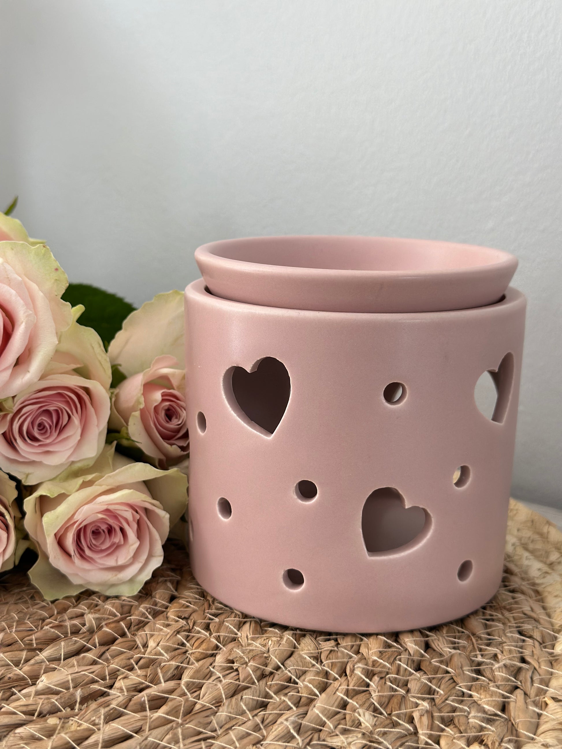 Ajoutez une touche de tendresse à votre intérieur avec ce brûleur rose délicat orné de petits cœurs. Idéal pour créer une ambiance chaleureuse et cocooning, il est parfait pour faire fondre vos fondants parfumés préférés tout en décorant joliment votre espace.