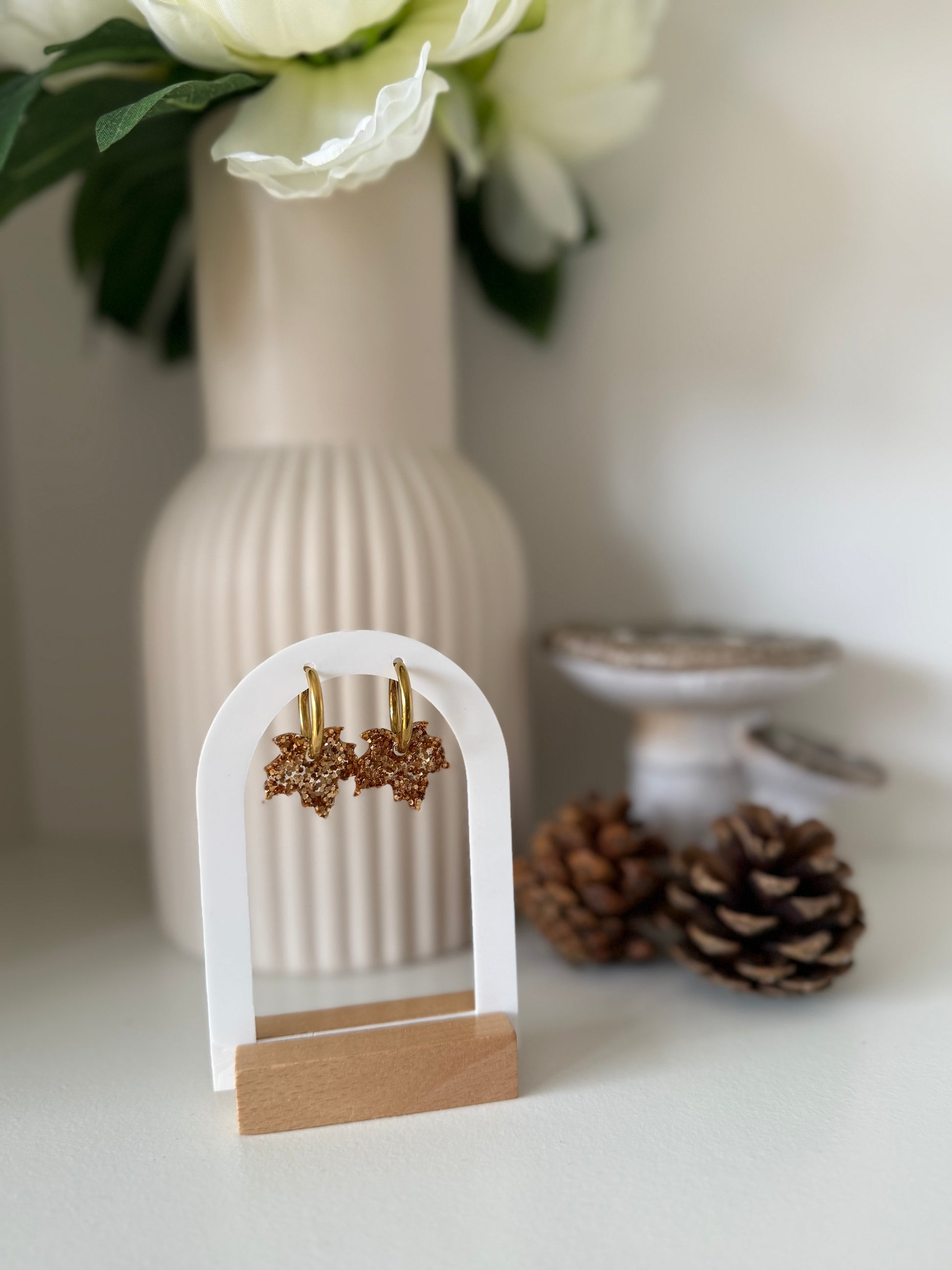 Laissez-vous séduire par la douceur et la chaleur de l’automne avec nos pampilles en forme de feuille, entièrement faites à la main en résine.